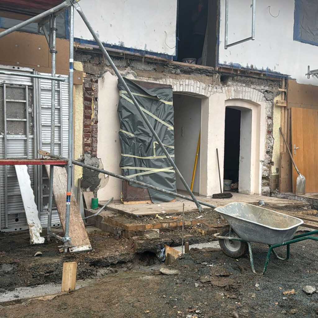 Auf unserer Baustelle hat sich in den letzten Tagen wieder einiges getan. Der alte Eingangsbereich wurde komplett weggestemmt.